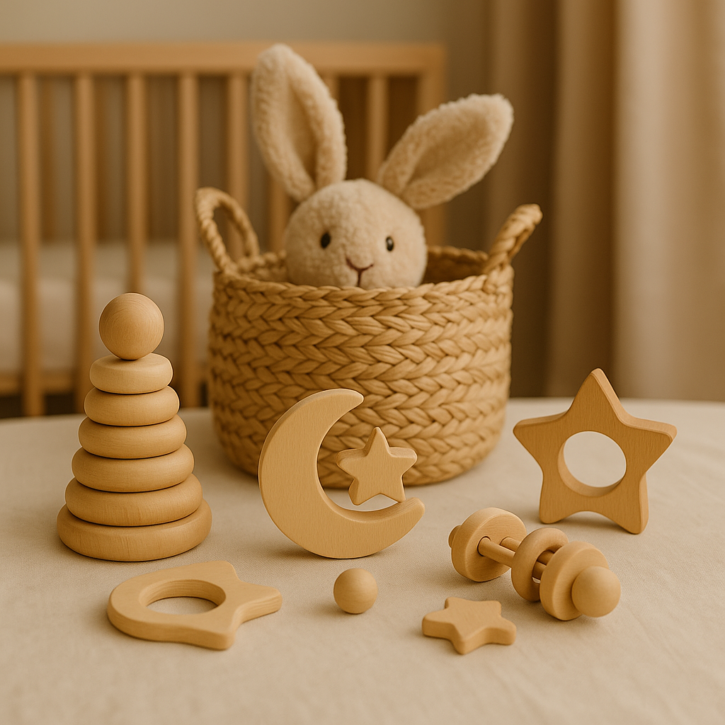Kinder brauchen echte Materialien, die ihre Sinne stärken. Wir wählen bewusst Spielzeug aus Holz, Stoff und Naturmaterialien – warm, schlicht und frei von Überflüssigem.